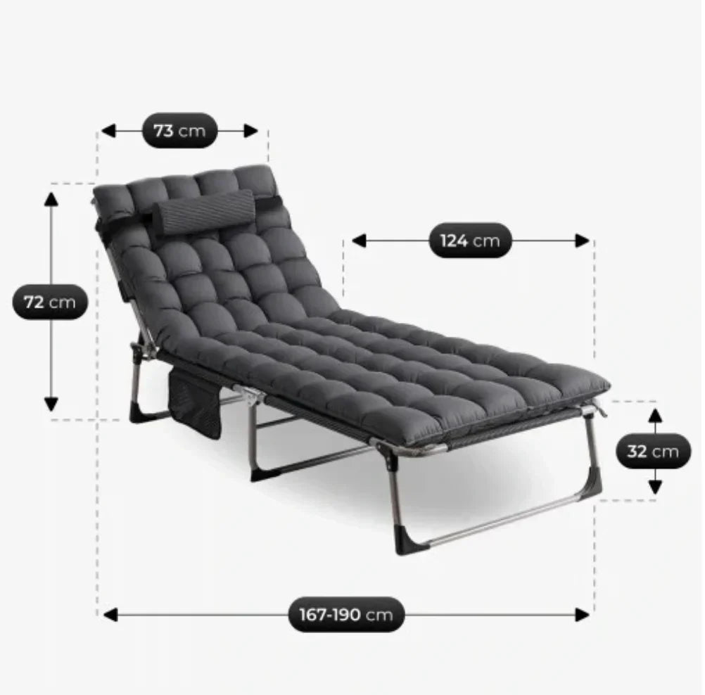 Schienale regolabile : imposta l'inclinazione secondo le tue esigenze, dalla posizione seduta sottile a quella completamente sdraiata. Cambia la posizione ideale per leggere, tenere la suola o indossare un pavimento.