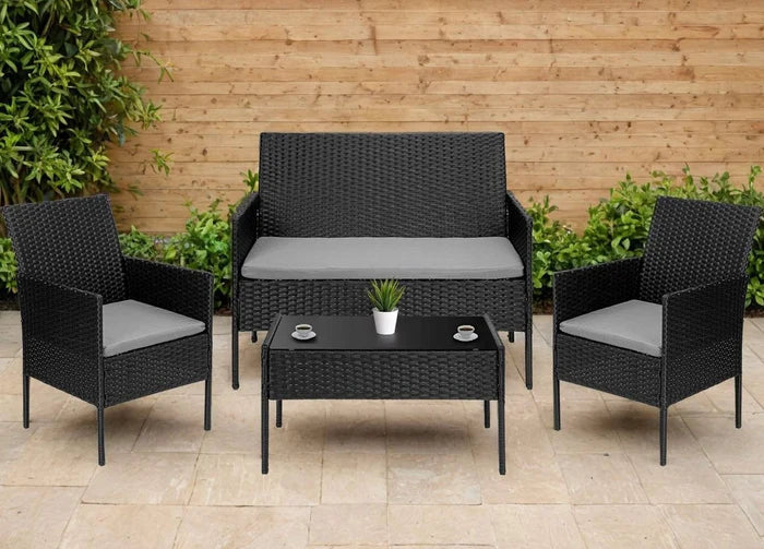 Mobili da giardino in technorattan – Set 4 in 1 con cuscini grigio scuro